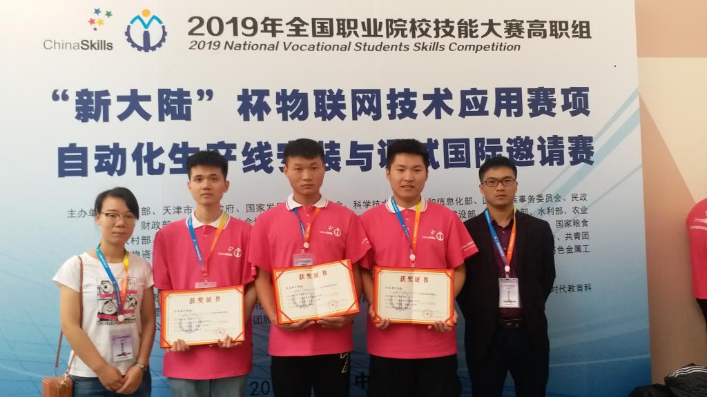 2019年5月7日,全国职业院校技能大赛“物联网技术应用”赛项在天津中德应用技术大学开赛。我院机电与信息工程系魏素盼老师和时生乐老师辅导的17级物联网专业尹汉东、17级计算机专业刘奕铄、17级电气自动化专业景遨等三位同学代表河南省参加此次竞赛。经过4个小时的激烈角逐,最终在全国104支参赛队中以第36名的好成绩获得三等奖。此前,机电与信息工程系派出的7支参赛团队在第十二届河南省高职院校技能大赛中亦斩获颇丰:物联网技术应用项目和软件测试项目获得一等奖,同时获得国赛资格;智能电梯装调与维护项目获得二等奖,并入围国赛;工业产品数值化设计与制造、移动互联网应用软件开发以及虚拟现实设计与制作等三个项目获得二等奖;现代电气控制系统安装与调试项目获得三等奖。