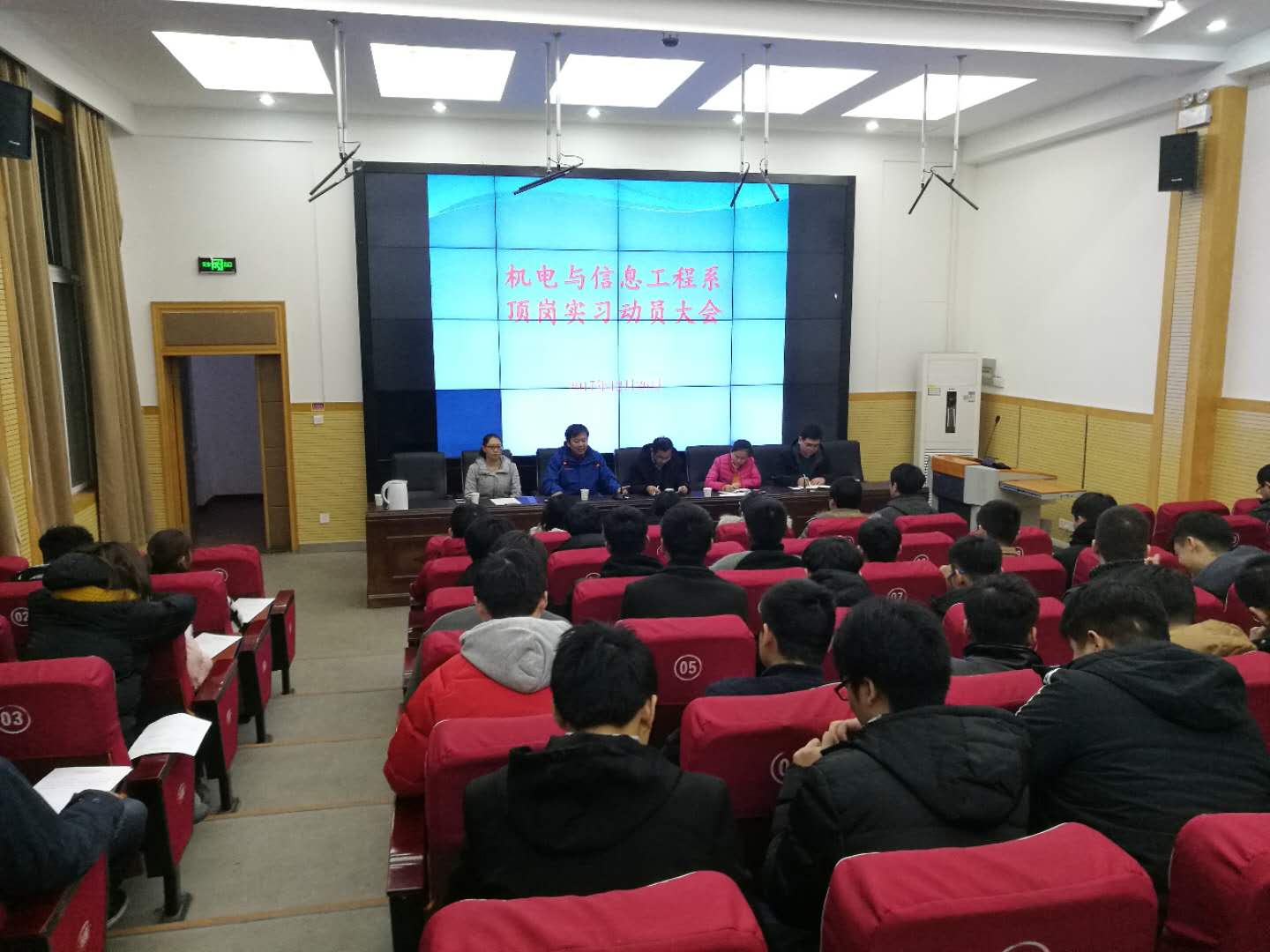 2017年12月26日,机电与信息工程系在北教三阶召开顶岗实习动员大会,系党支部书记、主任武凤翔,副主任王利卿,顶岗实习各班学生及其辅导员和指导老师参加。
