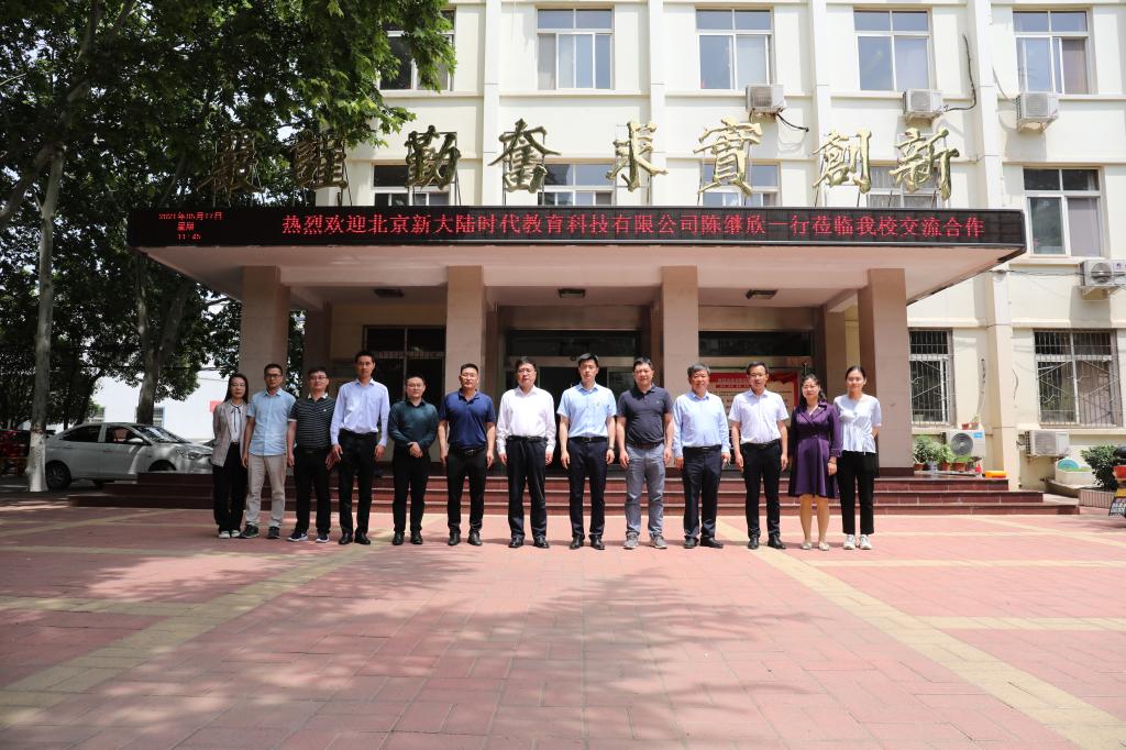 5月17日,我校与北京新大陆时代教育科技有限公司举行校企合作交流会,公司总经理陈继欣,校长郑志宏、副校长张凌杰出席会议。
