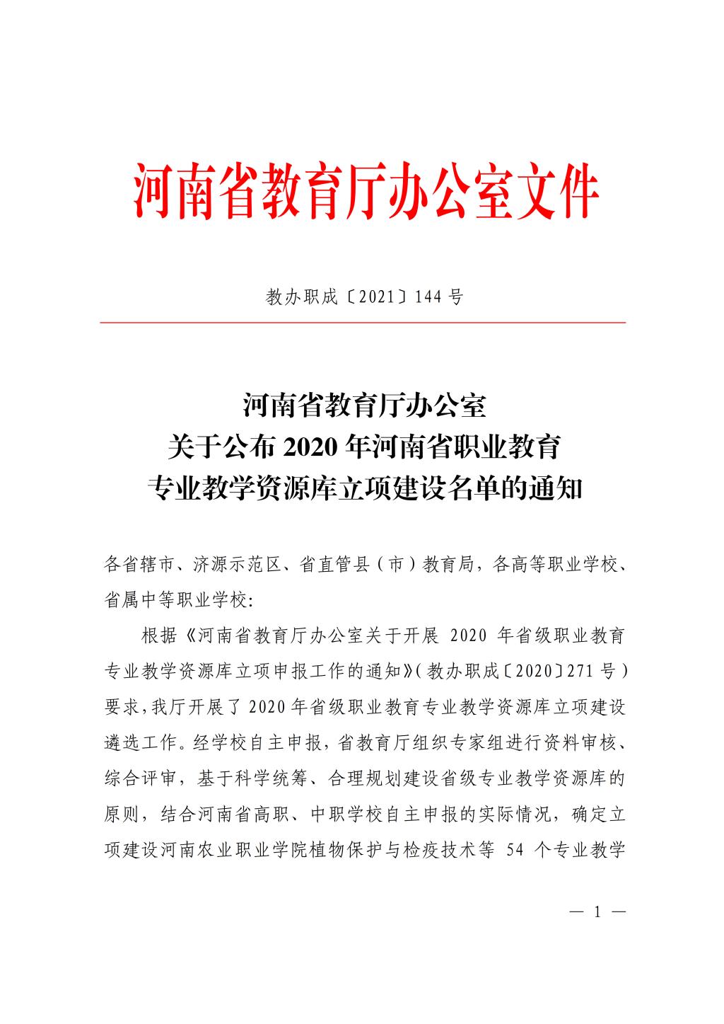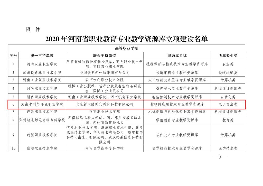 5月24日,河南省教育厅办公室发布《河南省教育厅办公室关于公布2020年河南省职业教育专业教学资源库立项建设名单的通知》(教办职成〔2021〕144号),我系物联网应用技术专业获批2020年河南省职业教育专业教学资源库立项建设项目。本次省级职业教育专业教学资源库共立项建设54项,其中高职35项。