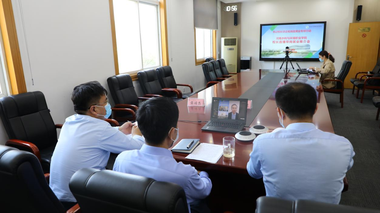 为深入落实书记校长访企拓岗促就业专项行动,千方百计为毕业生拓展就业岗位,5月16日,校长李广慧、副校长张凌杰亮相直播间,为我校电子信息类专业学生“代言”,通过招聘直播推介毕业生。广东骏亚科技股份有限公司、河南省特邦软件科技有限公司、上海轩益信息科技有限公司、绿瘦酒店(上海)有限公司等企业代表参加。