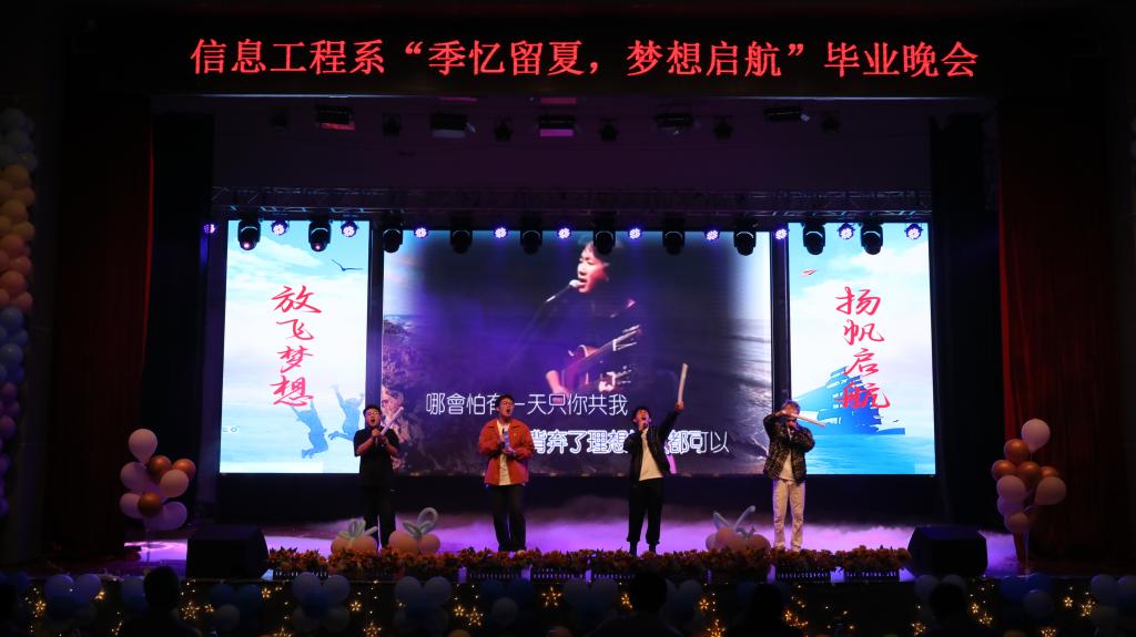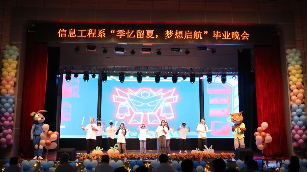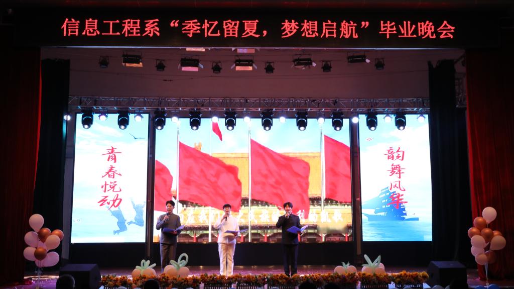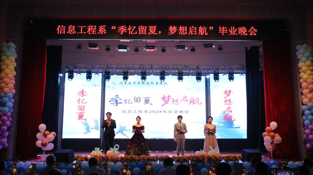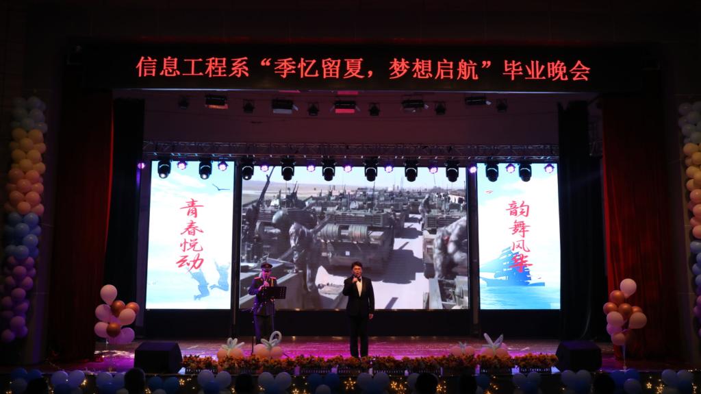 6月4日,信息工程系“季忆留夏,梦想启航”毕业晚会在花园路校区礼堂举行。校党委副书记、副校长蒋彦成,党委副书记、工会主席魏义军,各系部和有关处室负责人、信息工程系全体师生共同观看演出。