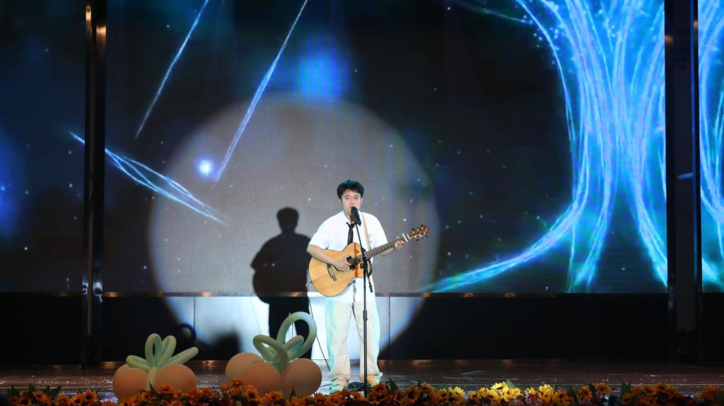 晚会在节目《童年往忆》中拉开序幕。由团学干部表演的歌舞串烧,将童年经典动画主题曲融合在一起,带领大家重温儿时记忆,现场气氛瞬间点燃。在“青春悦动,韵舞风华”中,舞蹈《春颂》将中国古典舞的魅力充分展现,翩翩的舞姿带领大家阅芳华万卷。赵耀耀等同学带来的豫剧《南阳关》选段,将众多艺术形式巧妙融合成唱念做打,将喜怒哀乐生动融入到五彩脸谱中,一招一式尽显东方之美,展现了戏曲文化的源远流长、精妙绝伦。声乐器乐表演《当那一天来临》带领大家重温革命峥嵘岁月,一个个音符化作一声声洪钟,激励莘莘学子传承红色基因,赓续民族精神血脉。朗诵《黄河之水天上来》歌颂了黄河千百年来滋养中华大地、孕育中华民族灿烂文明的伟大品格,表达了中华民族生生不息、不屈不挠的奋斗精神,激昂澎湃,充分展现出青年学子昂扬向上的精神风貌。