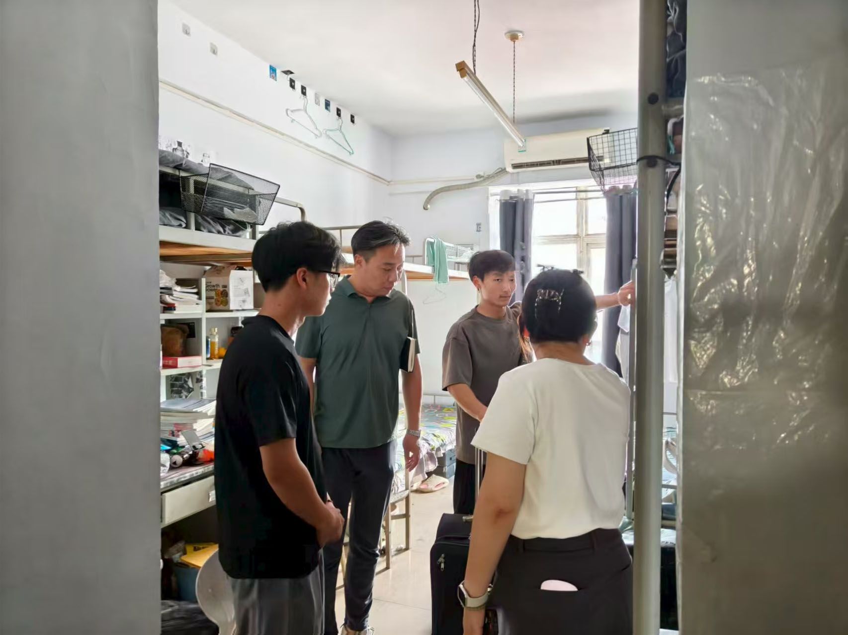 会后,全体学管老师分组走访学生宿舍,主动了解学生需求,协调解决学生实际困难,并就新学期规划进行交流。