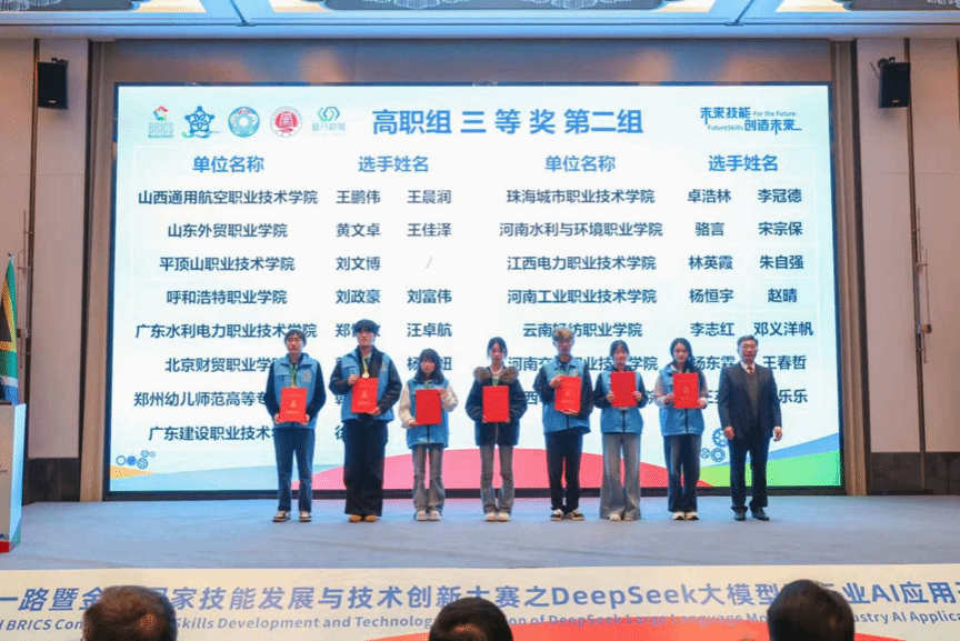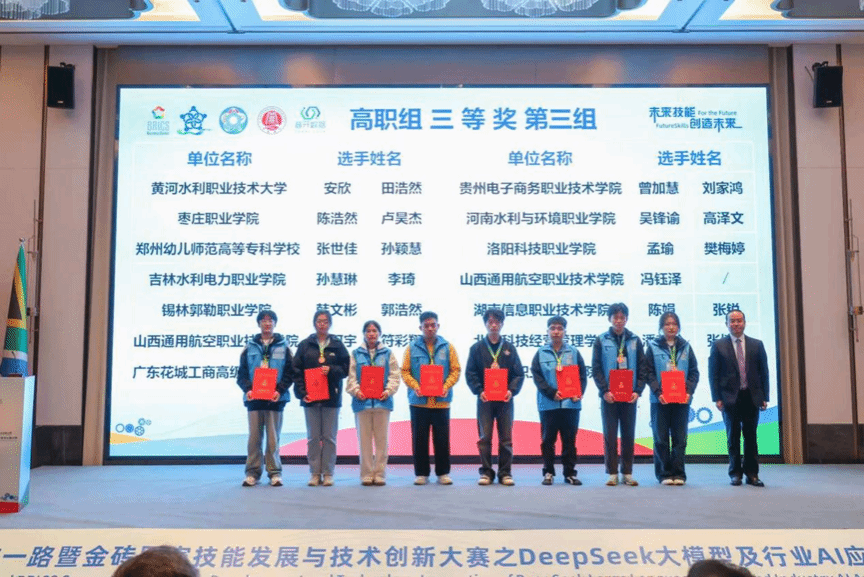 11月6日至8日,2025“一带一路”暨金砖国家技能发展与技术创新大赛之首届DeepSeek大模型及行业AI应用开发赛项全国总决赛在开封大学成功举办。大赛设置本科组和高职组,共有来自全国150多支队伍参赛。经过激烈角逐,我校太阳成城集团tyc234cc2支队伍脱颖而出,荣获全国三等奖2项。
