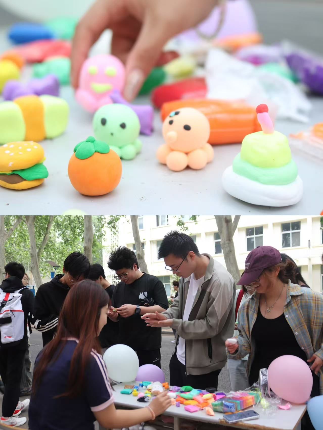 在“压力气球爆破”活动中,同学们通过压爆气球的方式帮助大家释放心理压力;在“情绪塑造 指尖上的多彩心情”活动中,同学们在手工创作过程中舒缓内心、解压放松,鲜艳的黏土色彩给大家带来了愉悦感。