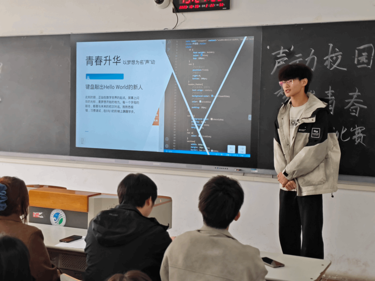 在“‘声’动校园,梦燃青春”主持人大赛中,同学们以“我的大学生活”为纽带,深度融入个人经历与真挚情感加之温情激昂的主持演绎,既考验学生“说”的能力,更挖掘“诉”的温度,生动诠释了新时代大学生活的表达魅力与情感张力。