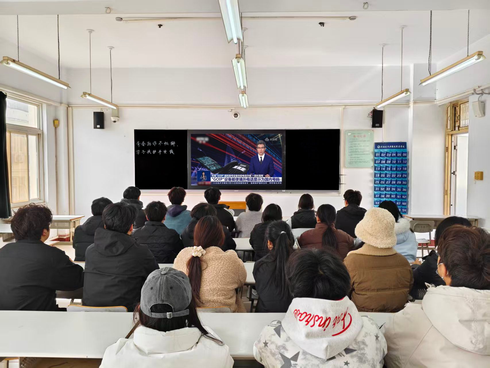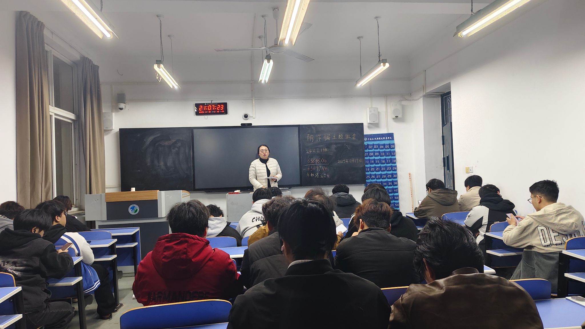 除此之外,为让反诈宣传常态化、日常化,学院充分利用课前课间10分钟这一碎片化时间,组织任课老师开展防诈宣讲。老师们结合自身经历和身边案例,用通俗易懂的语言向同学们介绍常见的诈骗手段和防范方法,让同学们在潜移默化中增强防诈意识,将反诈知识牢记于心。