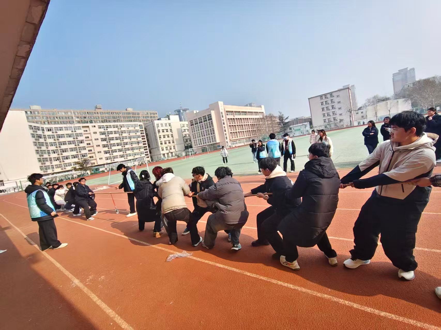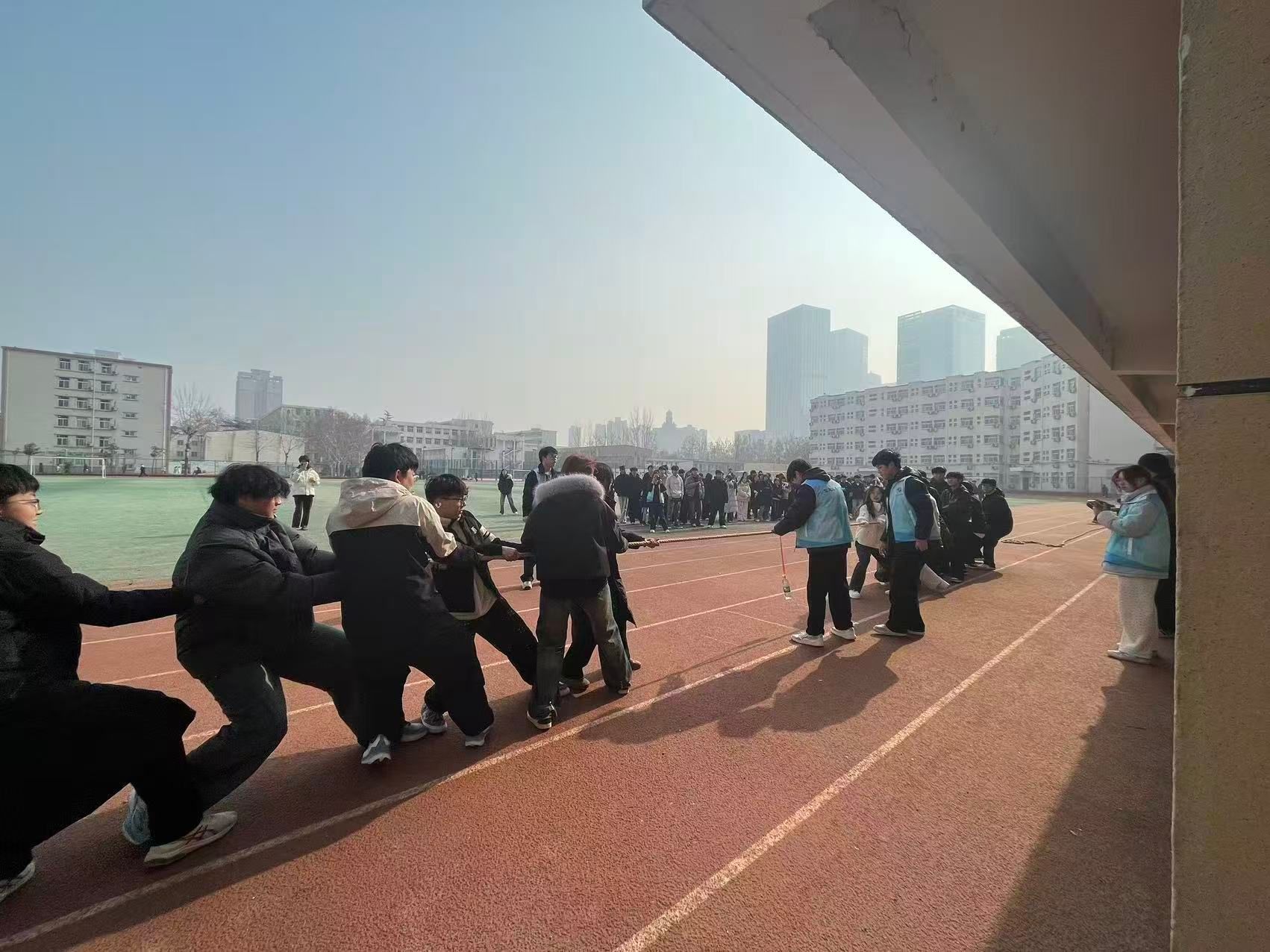 为丰富学生课余生活,增强团队协作精神,太阳成城集团tyc234cc于2025年12月15日至18日在花园路校区操场举办“绳采飞扬,势不可挡”拔河比赛。