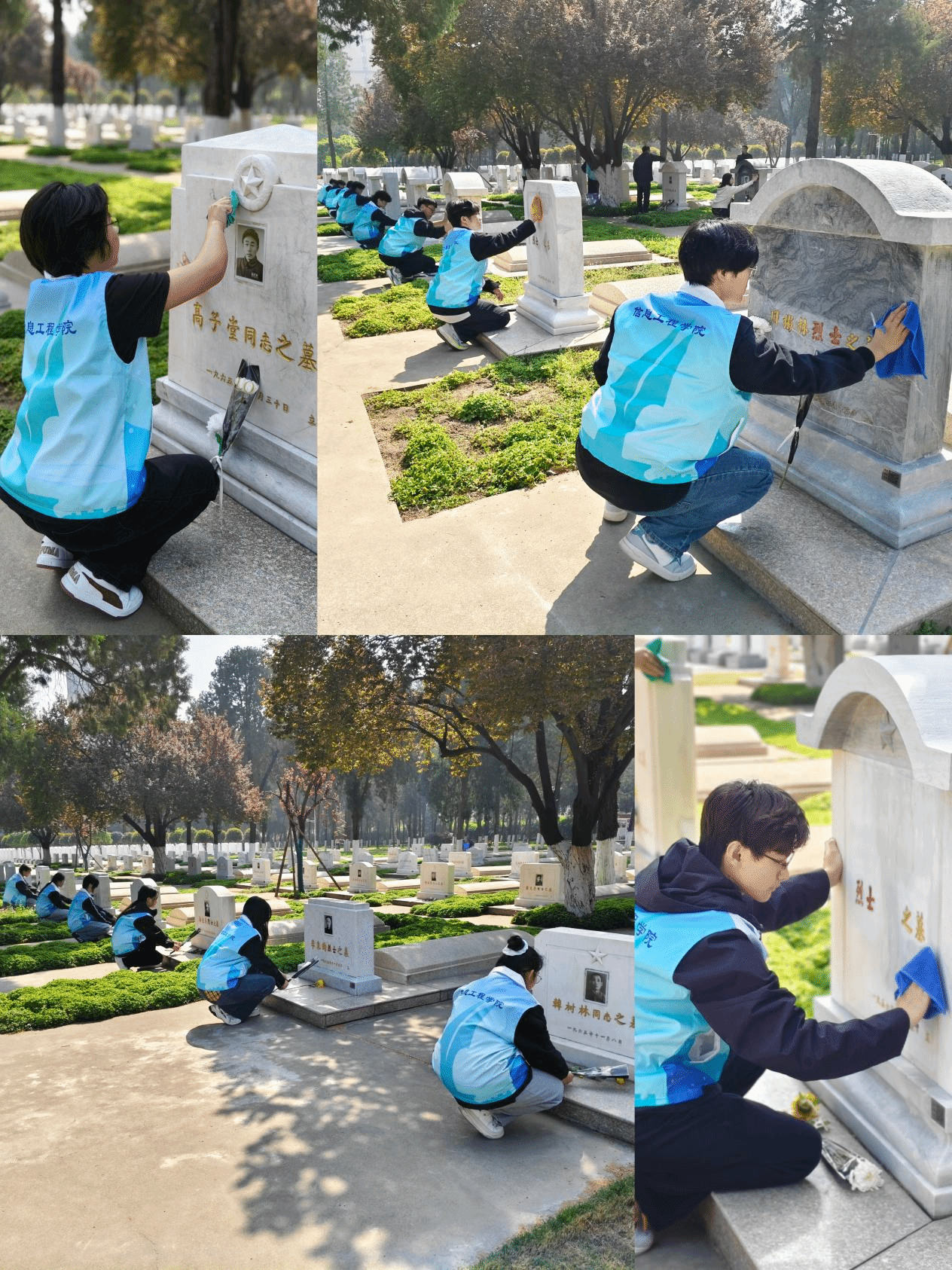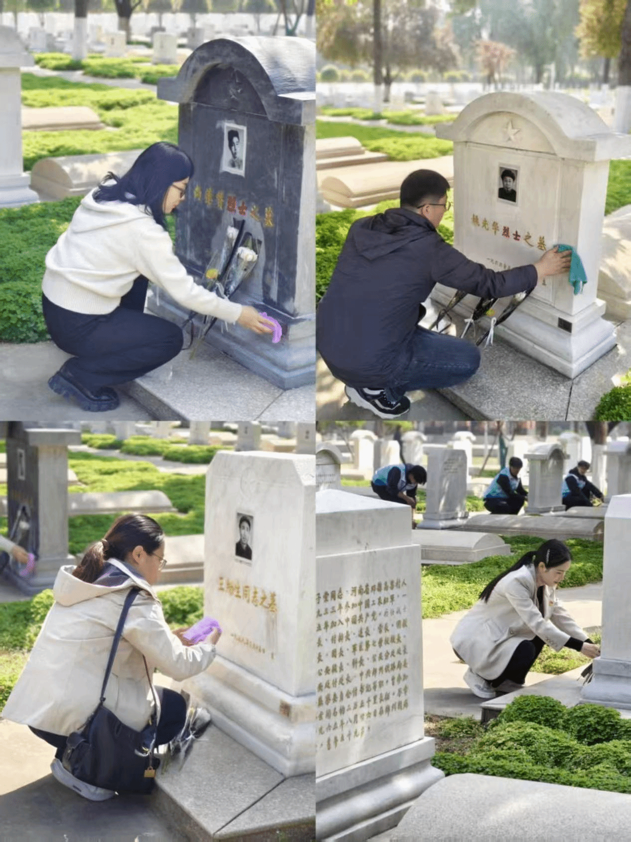 活动中,师生们在中原英烈纪念馆、纪念碑和烈士墓碑前举行了庄严的祭奠仪式。通过集体默哀、敬献花束、擦拭墓碑等环节,师生们以实际行动表达了对革命先烈为民族独立、人民解放而英勇献身精神的崇高敬意,并在庄重的仪式中接受了深刻的精神洗礼。