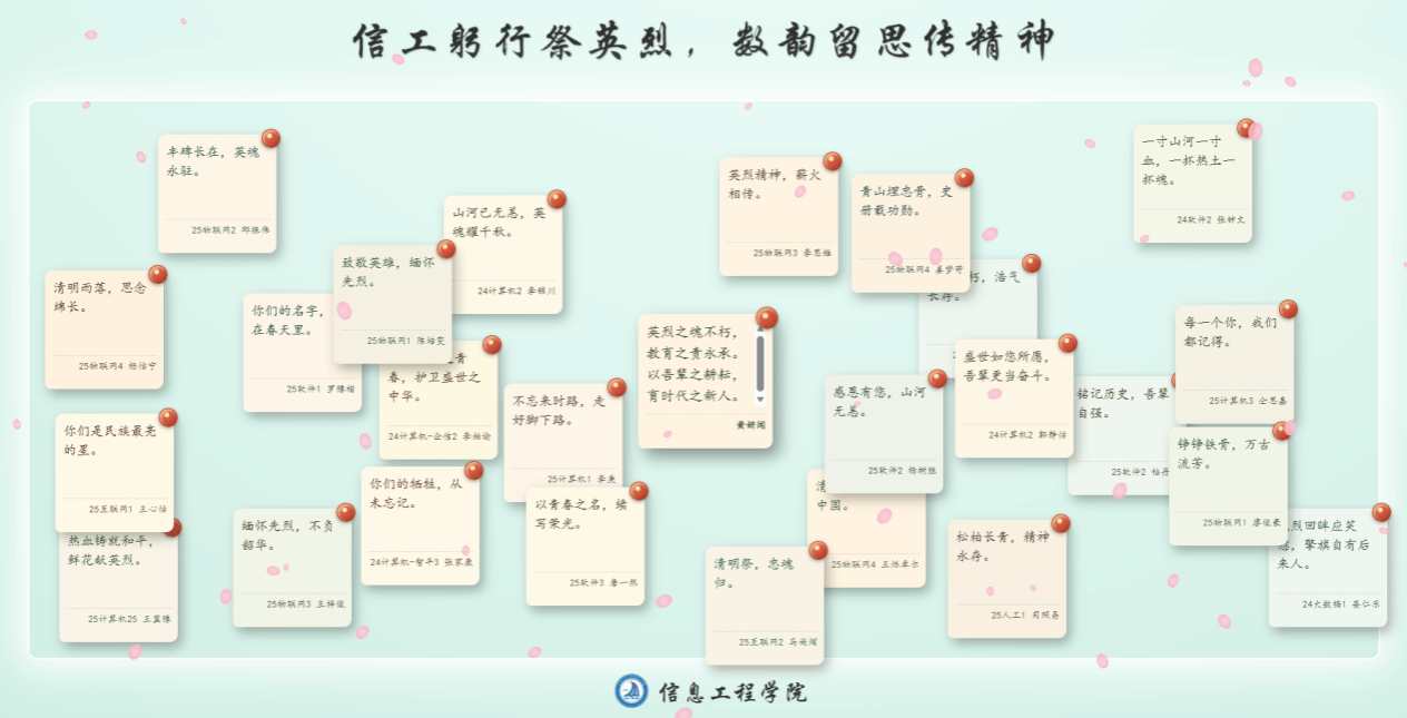 此外,学院结合学科特色,创新教育形式。学生们利用人工智能与软件技术专业技能,开发了“云祭扫”平台,通过数字化手段展示师生寄语,实现了线上线下同步缅怀。这种将专业所学应用于红色文化传播的实践,不仅提升了教育的实效性,也激发了学生的专业自豪感与使命感。