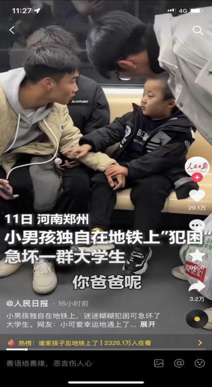 这一幕被地铁上的网友拍下并在抖音等网络平台上发布,当天相关视频观看量已破千万,并登上抖音热榜的郑州榜单。《人民日报》等官方新媒体账号也转发宣传了这一好人好事。