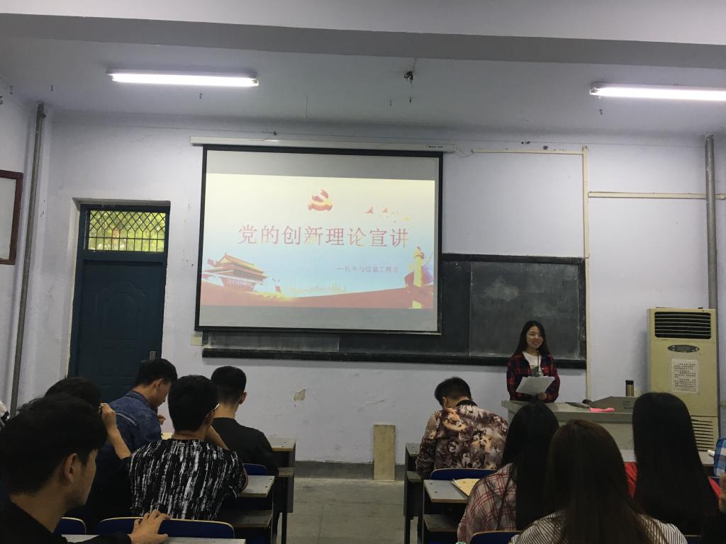 2018年9月18日下午3点,机电与信息工程系团学干部车蕾在实验楼三阶、四阶分别向17级计算机2-5班的学生开展了以《共筑中国梦,青春勇担当》为题的宣讲活动。