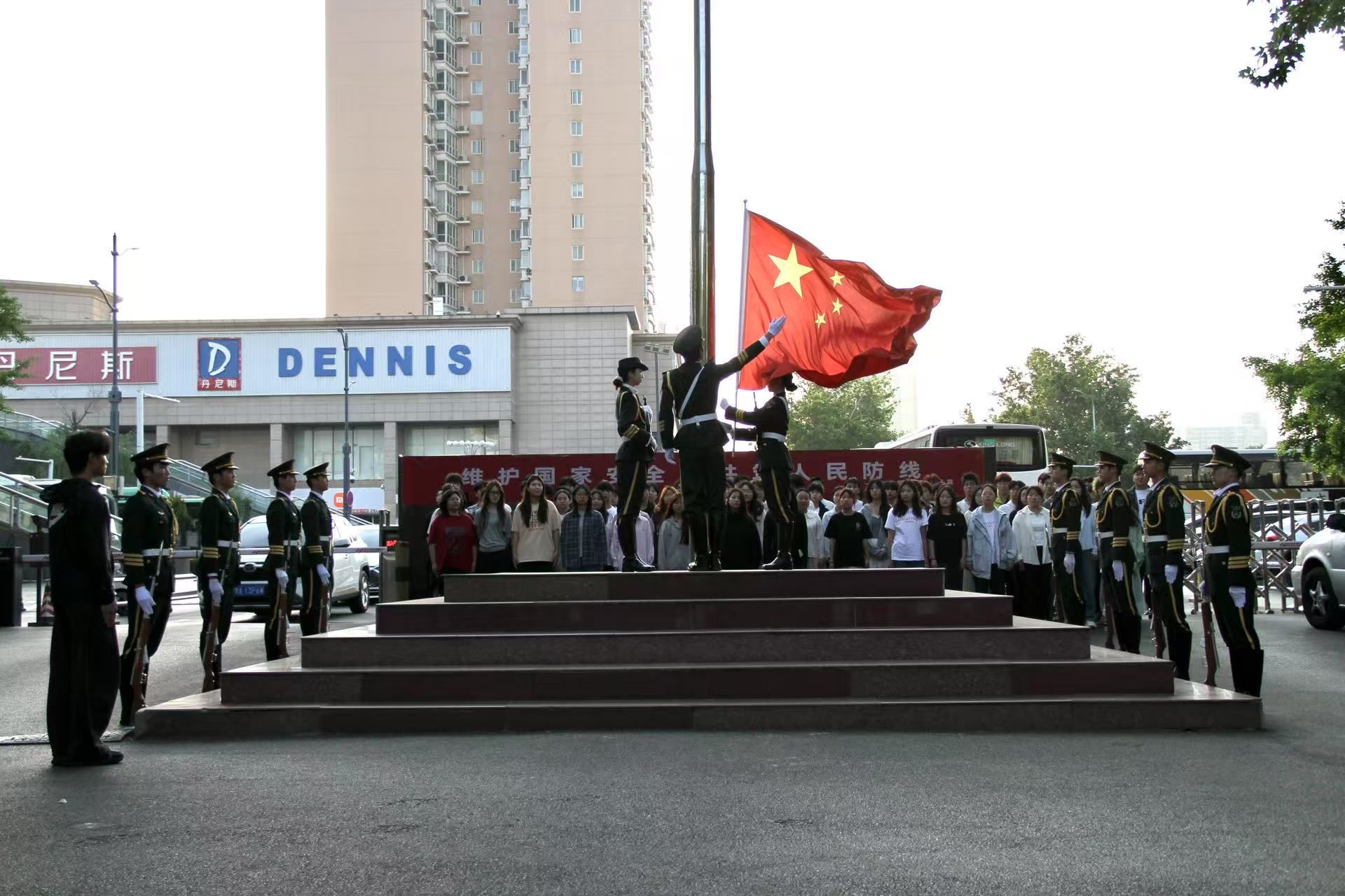 4月28日,太阳成城集团tyc234cc在花园路校区举行升国旗仪式,全体学管老师和2024级在校学生参加。